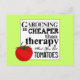 This funny gardening design has a bright red cheery tomato, and reads "Gardening is cheaper than therapy and you get tomatoes." Personally I think that's a tiny bit optimistic about the ability of people to grow tomatoes, but perhaps you have better luck than I do.