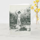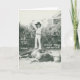 Garlene Tindall standing on a trick horse. Card