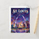 The scene is one of quiet strength and midwestern charm. The arch creates a perfect geometric curve that contrasts beautifully with the square blocks of the downtown buildings, all bathed in a warm, welcoming nocturnal light.