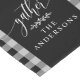 Create a cozy and inviting atmosphere for your holiday gatherings with this Gather Black Buffalo Check Fall Thanksgiving Table Runner. Featuring a stylish buffalo plaid design with the word "Gather" and customizable family name, this table runner is perfect for adding a personalized touch to your fall and Thanksgiving decor. Ideal for family dinners and festive celebrations, it brings a warm and welcoming vibe to your table setting.