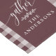 Create a cozy and inviting atmosphere for your holiday gatherings with this Gather Burgundy Buffalo Check Fall Thanksgiving Table Runner. Featuring a stylish buffalo plaid design with the word "Gather" and customizable family name, this table runner is perfect for adding a personalized touch to your fall and Thanksgiving decor. Ideal for family dinners and festive celebrations, it brings a warm and welcoming vibe to your table setting.