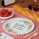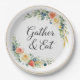 Add a touch of elegance to your table with this beautifully designed “Gather & Eat” plate. Featuring a delicate floral wreath with soft pastel roses, blueberries, wheat, and greenery, this plate brings a warm and inviting charm to any gathering. The graceful script message encourages togetherness and makes every meal feel special.