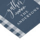 Create a cozy and inviting atmosphere for your holiday gatherings with this Gather Navy Blue Buffalo Check Fall Thanksgiving Table Runner. Featuring a stylish buffalo plaid design with the word "Gather" and customizable family name, this table runner is perfect for adding a personalized touch to your fall and Thanksgiving decor. Ideal for family dinners and festive celebrations, it brings a warm and welcoming vibe to your table setting.