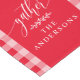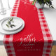 Create a cozy and inviting atmosphere for your holiday gatherings with this Gather Red Buffalo Check Fall Thanksgiving Table Runner. Featuring a stylish buffalo plaid design with the word "Gather" and customizable family name, this table runner is perfect for adding a personalized touch to your fall and Thanksgiving decor. Ideal for family dinners and festive celebrations, it brings a warm and welcoming vibe to your table setting.