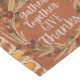 Create a warm and festive table setting with this Thanksgiving table runner. Designed with rustic charm, it features a deep autumn base colour accented by borders of fall leaves, pumpkins, and acorns. At the centre, a harvest wreath of wheat, pumpkins, and cranberries frames the phrase “Gather Together, Give Thanks.” Perfect for family dinners, Friendsgiving celebrations, or holiday parties, this table runner brings seasonal elegance and a welcoming touch to your feast. Customizable to fit your table and celebration style.