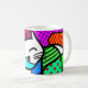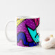 Caneca com reprodução de uma ilustração de gato com cores pop
