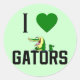 Alligator gifts for gator lovers. Green gator sits on the word gator. Design features a green heart with the words I love gators. Great gift for animal lovers.