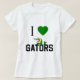 Alligator gifts for gator lovers. Green gator sits on the word gator. Design features a green heart with the words I love gators. Great gift for animal lovers.