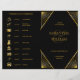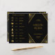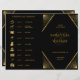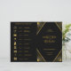 Wedding folded program and timeline with icons black and gold art deco design pattern