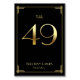 Cartes de numéro de table du mariage Great Gatsby Art Déco avec numéro d'or 49 et texte modifiable, où vous pouvez ajouter vos noms et date de mariage, imprimé sur arrière - plan noir