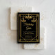 A roaring good fun awaits with this elegant birthday gala party invitation with a roaring 20s theme, featuring a deco frame with chandelier details and elegant calligraphy. A perfect birthday party invitation template for a Great Gatsby theme, in antique gold and black. Whether for a 40th, 50th, 60th, 70th or 80th birthday party, or for a roaring twenties, this vintage art deco nouveau frame in faux gold theme (digital effect) will shine bright. A roaring 20s speakeasy theme party for a doll of any age. Also suitable for a business or corporate gala event.