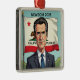 Gavin Newsom for President in 2028. Red, white and blue patriotic political Christmas ornament with a cartoon caricature of Gavin.