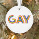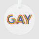 Cette oeuvre d'art présente le mot Gay dans une police couleur arc-en-ciel.