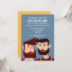 Cartoon beard grooms wedding invitation ideal for gay weddings .. this invitation features two grooms with full beards on blue and yellow background banner detail designer wedding products by Ricaso - we are able to do slight variations to the grooms - featuring two males with different shades of brown hair