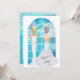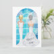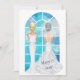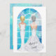 Beautiful gay wedding invitation with two brides standing in front of church window.