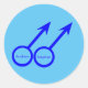 This lovely sheet of round stickers is designed for gay men. It features two blue male symbols standing side by side. There is customizable blue text inside each of the symbols to put names. These would make lovely envelope seals or favour bag seals to add a personal touch to those all important wedding invites and favours.