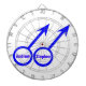 This awesome dartboard is designed for gay men. It features two blue male symbols standing side by side. The background is white and there is customizable blue text inside each of the symbols to put names.