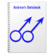 This awesome notebook is designed for gay men. It features two blue male symbols standing side by side. The background is white and there is customizable blue text at the top allowing you to personalize this lovely notebook.