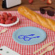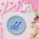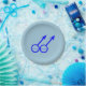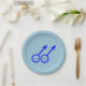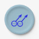 This awesome paper party plate is designed for gay men. It features two blue male symbols standing side by side. The background is blue and there is customizable blue text inside each of the symbols to put names.