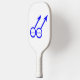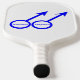 This awesome Pickleball Paddle is designed for gay men. It features two blue male symbols standing side by side. The background is white and there is customizable blue text inside each of the symbols to put names. There is also custom text on the back to put names.
