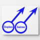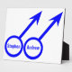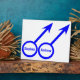 This awesome plaque is designed for gay men. It features two blue male symbols standing side by side. The background is white and there is customizable blue text inside each of the symbols to put names.