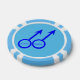 This awesome set of poker chips is designed for gay men. It features two blue male symbols standing side by side. The background is blue and there is customizable blue text inside each of the symbols to put names.