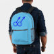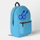 This awesome backpack is designed for gay men. It features two blue male symbols standing side by side. The background is blue and there is customizable blue text inside each of the symbols to put names.