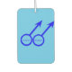 This awesome air freshener is designed for gay men. It features two blue male symbols standing side by side. There is customizable blue text inside each of the symbols to put names. There is also customizable text on the back.