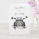 A wedding congratulations card for a gay male wedding. Design features car with cans and two men with their arms out the windows holding top hats. Background of white hearts on light grey. (created with original artwork©delightful-doodles)