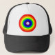 This lovely hat is designed for gay men. It features a round rainbow with two little blue male symbols, standing side by side in the centre of the rainbow. It signifies the love between two men.