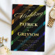 Celebrate your love with the Gay Men Wedding Elegant Rainbow collection — a complete suite of coordinating stationery designed for two grooms. Bold diagonal Progress Pride stripes on sophisticated black, with gold typography throughout. Every piece in this suite is fully customizable with your names, date, and wedding details.