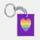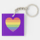 Gay pride keychain featuring a rainbow flag heart on purple background.