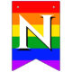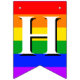 This gay pride wedding bunting banner features a gay pride rainbow background and spells out the couple's names! There are spaces for 16 letters and it is fully customizable so you can fill in the names of the wedding couple, or whatever letters, numbers, or symbols you like!