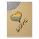 Rainbow pride gay Love heart .. coeur d'amour dessiné dans le sable avec le mot "amour" sous lui et les vagues laps doucement sur la ligne de rivage .. designer gay / lesbiennes produits par Ricaso