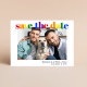 A unique save the date for your special day, this modern announcement features "save the date" in bold typography in the colours of the gay pride rainbow. Add your photo, first names in an elegant typography, and wedding date on the front. On the reverse, add your full names in the same elegant typography as the front, and your wedding date, location and website in simple minimal typography.