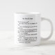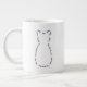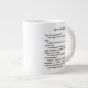 Un côté de la tasse géante a une histoire courte minuscule. L'autre côté a un contour de chat fait à partir des fragments de l'histoire.