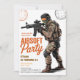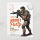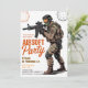 Gear up and get ready for an action-packed Airsoft Party! This high-energy invitation is perfect for celebrating Ethan's 14th birthday. The design features a cool, illustrated soldier in full combat gear, ready for battle, with target graphics in the background to set the scene. It's the perfect way to assemble your squad for a thrilling day of strategy and fun. All the party details are fully customizable to get your recruits ready for the mission!