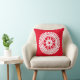 Gear Wheel - Complex 10 Spokes - White on Red Throw Pillow