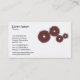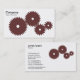A business card template with an attractive motif made up of a series of cogged gear wheels creating a clean modern design suitable for many types of business. Company name and business on the front of the card. Name, address, telephony, email and web address on the reverse with a smaller version of the main motif.