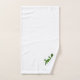 Bath towel set, consisting of a face cloth, hand towel and bath towel with a gecko lizard design. You can customise this bath towel set with any text of your choice. Should you require any help with customising then contact us through the message link on this page. Gecko design bathroom towel set
