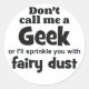 Don't call me a Geek or I'll sprinkle you with fairy dust. Let the people around you know what you are into and that you are ready to defend it. Black font.