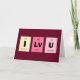 Then this is the greeting card for you. One of our very clever (and nerdy) designers came up with this funny I Love You design using elements from the periodic table. Geeky enough for you! Elements from the periodic table are shown in sassy pink and violet colours over a deep red background. Super cool, super retro!