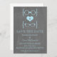 Quirky and chic Geeky Glasses Chalkboard Save the Date Announcement in light blue featuring a cute heart flanked by two pairs of nerdy eyeglasses, a manly pair and a girly pair representing the groom and bride on a chalkboard look background. This offbeat save the date invitation is perfect for announcing your geek wedding! Easy to customize, simply add the details of your wedding in the text fields provided. Click on the "Customize It" button to find additional personalization options.