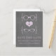 Quirky and chic Geeky Glasses Chalkboard Save the Date Postcard in purple featuring a cute heart flanked by two pairs of nerdy eyeglasses, a manly pair and a girly pair representing the groom and bride on a chalkboard look background. This offbeat save the date postcard is perfect for announcing your geek wedding! Easy to customize, simply add the details of your wedding in the text fields provided. Click on the "Customize It" button to find additional personalization options.