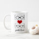 Cute and whimsical Geeky Glasses Mug featuring a red heart flanked by two pairs of geeky eyeglasses, a manly pair and a girly pair. This sweet mug is perfect for enjoying your favourite beverage with nerdy flair! Easy to customize, simply add the personalized text of your choosing. Click "Customize It" to find more personalization options.