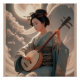 In a serene Japanese garden, a geisha dressed in traditional attire gracefully plays a shamisen, a three-stringed Japanese guitar-like instrument. Her kimono, adorned with intricate patterns and vibrant colours, flows elegantly as she strums the shamisen with practiced ease. The delicate sound of the instrument resonates through the air, creating a tranquil ambiance that perfectly complements the beauty of her surroundings. With each note, she embodies the grace and poise of her cultural heritage, offering a captivating glimpse into the artistry and tradition of the geisha.