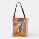 Shoulder tote bag with colourful Japan-inspired illustration of a geisha with a parasol.