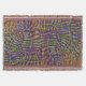 Gelli print stencilled abstract art in greens, purple and gold. This design was created using the gelli plate technique. Artwork and photography by Sandra Foster Designs ©.