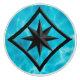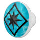 Knob in a gem stone slab pattern - blue Larimar or blue pectolite, also called the "Atlantis stone", in a silky pattern of soft sky blue and aqua, and a compass rose ornament with the look of black onyx