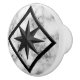 Knob in a gem stone slab pattern - classic grey / grey and white marble, with a delicate webbed pattern, and a compass rose ornament with the look of black onyx